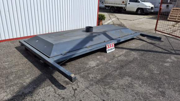 Elszívóernyő, ipari elszívóernyő, füstelszívó, Használt gép Befoglaló méretek: Szélesség: 3850 mm Mélység: 2400 mm Magasság: 400 mm Súly: 287 kg Elszívó felület: 3540 x 1400 mm Csonk átmérő: Ø 250 mm - További információk