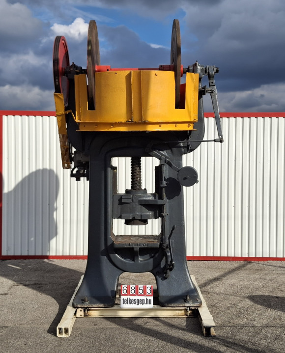 Frikciós prés, lendkerekes prés, kovácsprés, csavarprés, Használt gép Gyártó: ASJ Típus: J53-160B Befoglaló méretek: Szélesség: 1850 mm Mélység: 1380 mm Magasság: 3140 mm Súly: 8190 kg Asztal méret: 560 x 510 mm Áteresztő képesség tárgyasztal nélkül: 560 x560 mm Áteresztő képesség asztallal: 260 mm Névleges nyomás: 160 Tonna Lökethossz: 360 mm - További információk