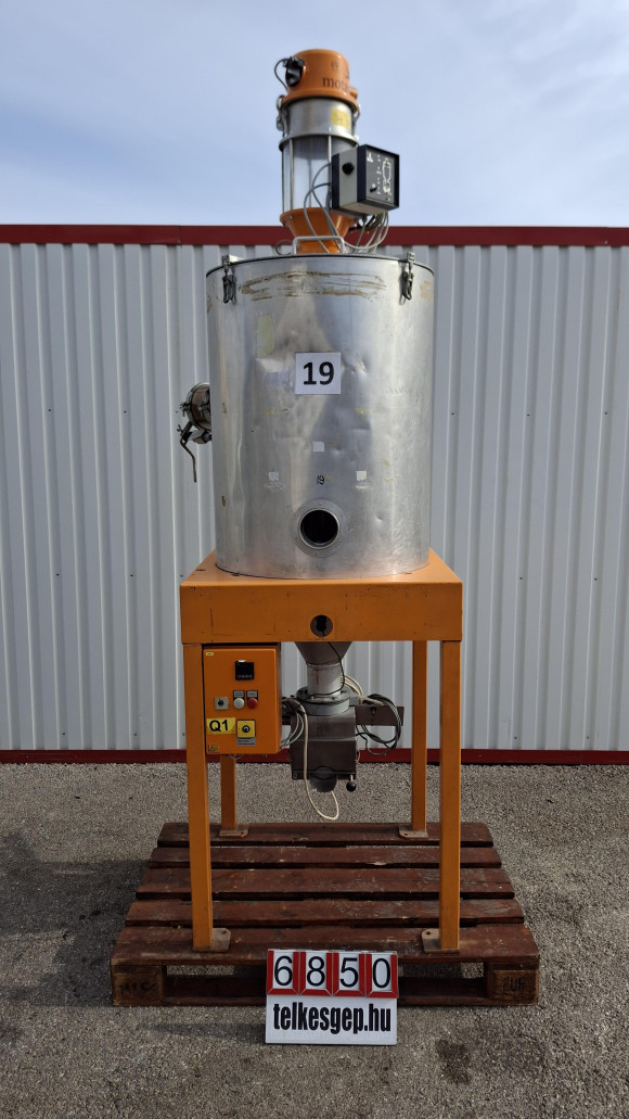 Granulátum szárító, granulátum felszívó, HLS06-1-A010-0, Használt gép Gyártó: Motan Típus: HLS06-1-A010-0 Befoglaló méretek: Szélesség: 750 mm Mélység: 750 mm Magasság: 2500 mm Elektromos adat: 230V; 2kW Tartály méret: 300 liter Vákuumos felszívóval és előmelegítővel ellátva - További információk