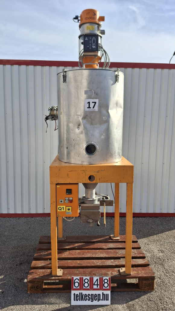 Granulátum szárító, granulátum felszívó, HLS06-1-A010-0, Használt gép Gyártó: Motan Típus: HLS06-1-A010-0 Befoglaló méretek: Szélesség: 750 mm Mélység: 750 mm Magasság: 2500 mm Elektromos adat: 230V; 2kW Tartály méret: 300 liter Vákuumos felszívóval és előmelegítővel ellátva - További információk