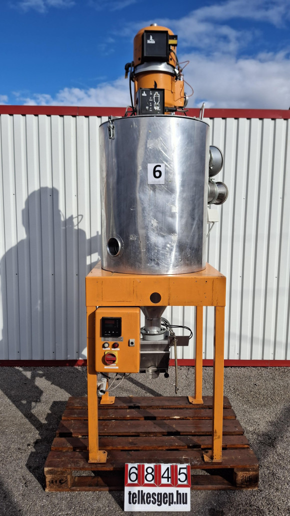 Granulátum szárító, granulátum felszívó, Motan NS-D05-ST-2-PO-SL-0020, Használt gép Gyártó: Motan Típus: NS-D05-ST-2-PO-SL-0020 Befoglaló méretek: Szélesség: 750 mm Mélység: 950 mm Magasság: 2500 mm Elektromos adat: 230V; 2kW Tartály méret: 300 liter Vákuumos felszívóval és előmelegítővel ellátva - További információk