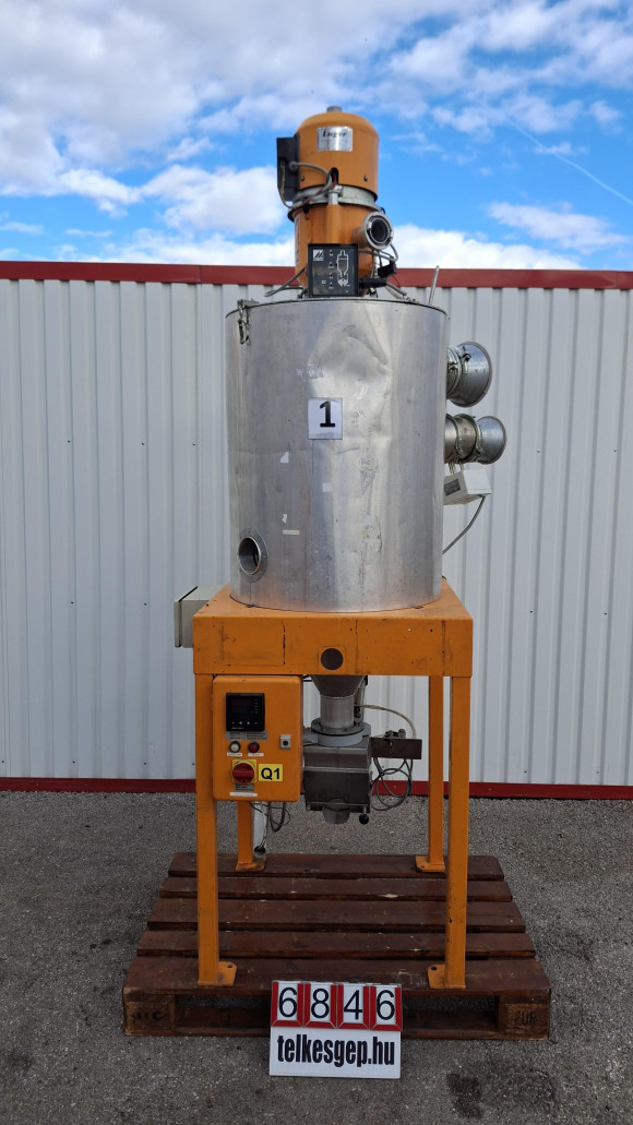 Granulátum szárító, granulátum felszívó, Motan NS-D05-ST-2-PO-SL-0020, Használt gép Gyártó: Motan Típus: NS-D05-ST-2-PO-SL-0020 Befoglaló méretek: Szélesség: 750 mm Mélység: 950 mm Magasság: 2500 mm Elektromos adat: 230V; 2kW Tartály méret: 300 liter Vákuumos felszívóval és előmelegítővel ellátva - További információk