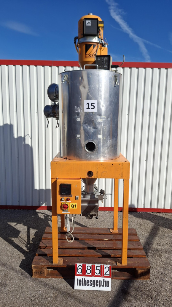 Granulátum szárító, granulátum felszívó, Motan NS-D05-ST-2-PO-SL-0020, Használt gép Gyártó: Motan Típus: NS-D05-ST-2-PO-SL-0020 Befoglaló méretek: Szélesség: 750 mm Mélység: 950 mm Magasság: 2500 mm Elektromos adat: 230V; 2kW Tartály méret: 300 liter Vákuumos felszívóval és előmelegítővel ellátva - További információk
