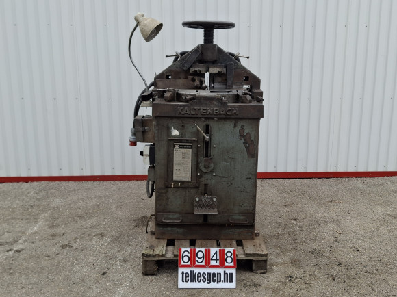 Kaltenbach fűrész, Fűrészgép, Gérvágó, fémipari körfűrész, használt gép Gyártó: KALTENBACH Típus: KKS Gépszám / Nr.: 21139 Elektromos adatok : 400 v Súly : 1200 kg~ Vágási sebességek (fűrészlap kerületi sebesség): Z59 fogszám: I. fokozat: 17 m/perc II. fokozat: 34 m/perc Z72 fogszám: I. fokozat: 14 m/perc II. fokozat: 28 m/perc Z90 fogszám: I. fokozat: 11 m/perc II. fokozat: 22 m/perc - További információk