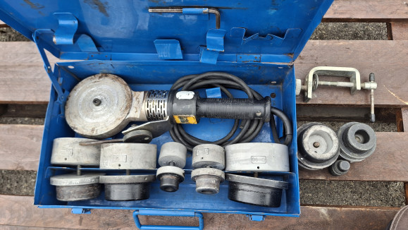 Polifúziós hegesztőgép, tompahegesztő, tokos hegesztőgép, műanyagcső hegesztőgép, Dytron Polys P4, Használt gép Gyártó: Dytron Típus: Polys P4 Befoglaló méretek: Szélesség: 420 mm Mélység: 250 mm Magasság: 130 mm Elektromos adat: 230V, 1200W Hegesztő pofa méretek: D15, D30, D40, D50, D63, D75, D75, D90 - További információk
