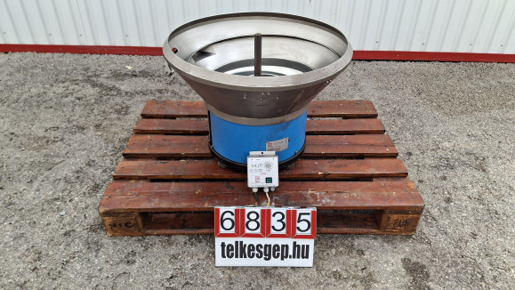 Rezgőadagoló, köradagoló, vibrációs alkatrészadagoló 640 mm, Használt gép Gyártó: Gasco Típus: BVN 4 Befoglaló méretek: Szélesség: 720 mm Mélység: 720 mm Magasság: 510 mm Elektromos adat: 230V, 2,5A, 575W, Tányér méret: 340-640 mm - További információk