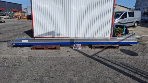 Szállítószalag, szállítópálya, fútószalag, Használt gép Befoglaló méretek: Szélesség: 6100 mm Mélység: 320 mm Magasság: 530 mm Heveder méret: 5800 x 250 Heveder sebesség: 5,74 m/perc Elektromos adat: 400V; - További információk