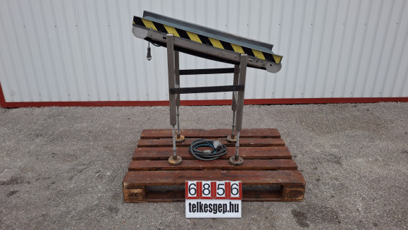 Szállítószalag, futószalag, szállító pálya, Használt gép Befoglaló méretek: Szélesség: 940 mm Mélység: 420 mm Magasság: 1020 mm Elektromos adat: 230 V, 0,12 kW Heveder méret: 940 x 230 mm Motor gyártó: Trommelmotor Típus: 82 S - További információk